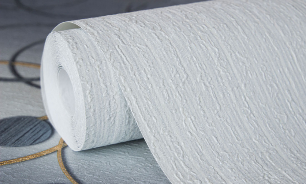 Обои горячего тиснения светлого оттенка. Вертикальный рисунок скроет неровности стен и не будет видно мест стыковки края.