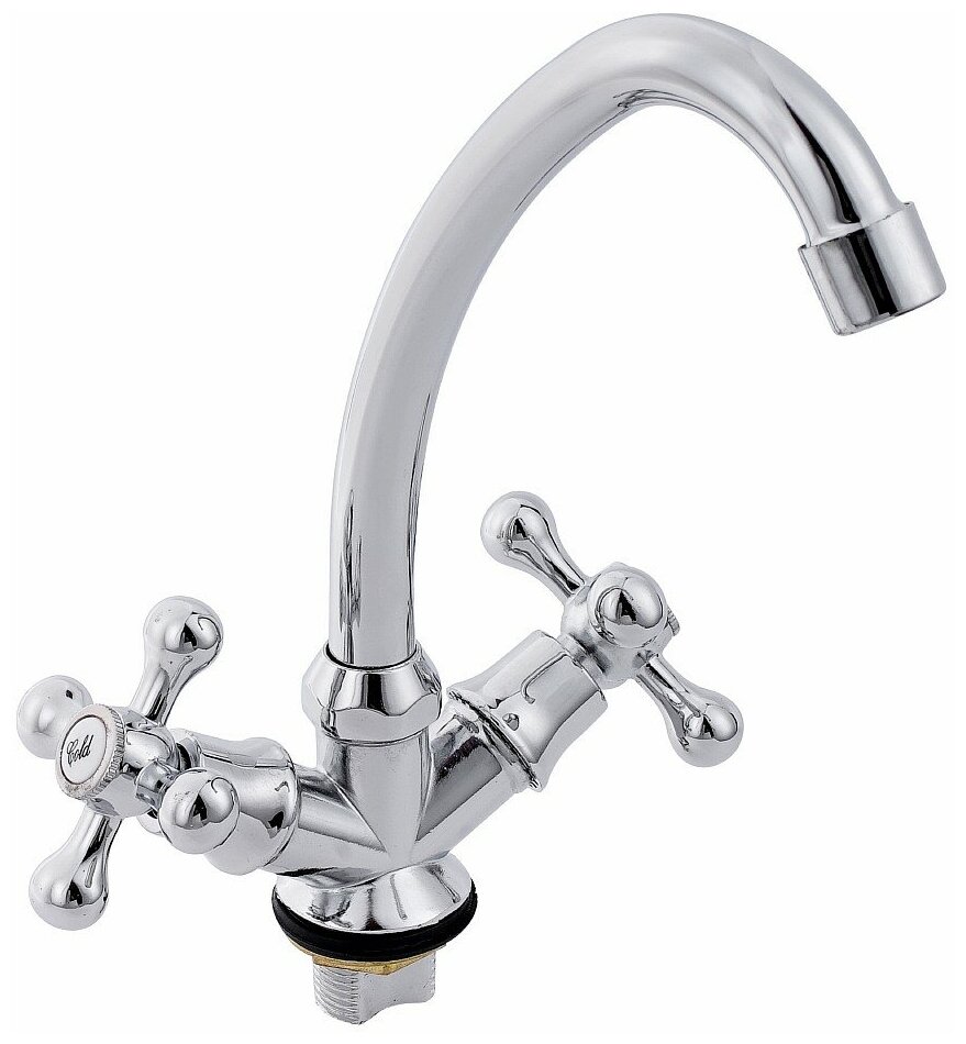 тип: смеситель, назначение: для кухни (мойки), управление: вентильное, материал корпуса: силумин, покрытие: хром, длина излива: 130 мм, высота: 240 мм, ширина: 160 мм, особенности: аэратор.
