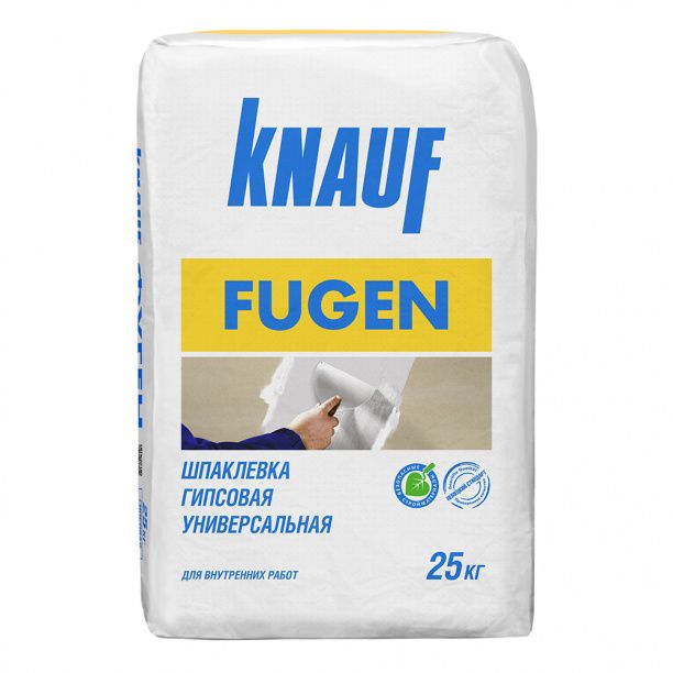 КНАУФ-Фуген это гипсовая универсальная шпатлевка. Изготовлена на основе гипса с полимерными добавками. Предназначена для заделки стыков, трещин и других возможных повреждений ГКЛ и ГВЛ, с использованием армирующей ленты. А так же тонкослойного шпаклевания, монтажа и заделки стыков гипсовых пазогребневых плит. Подходит для внутренних работ.