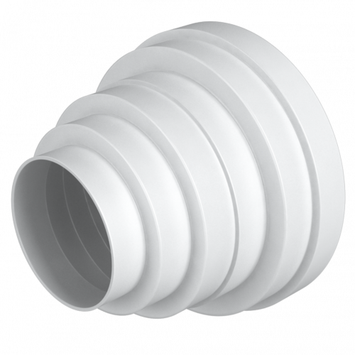Для соединения каналов разных диаметров. Корпус подрезается для получения редуктора с необходимыми диаметрами. Соединение осуществляется напрямую с воздуховодами.