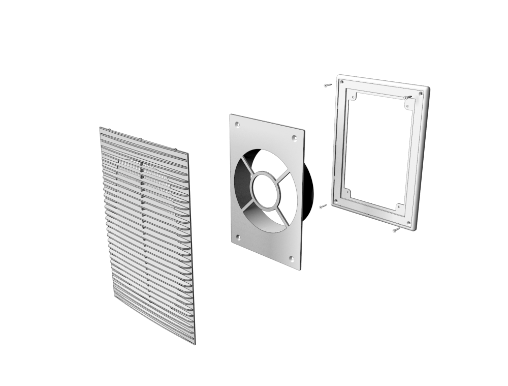 Для декоративного оформления выходов вытяжных вентиляционных систем бытовых, общественных и промышленных зданий. Выход из стены с круглым фланцем.
